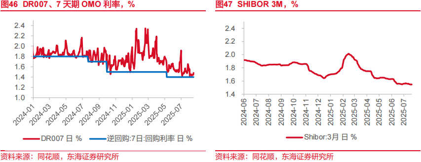 7月以来财政资金对货币供应支撑较为明显。同期,部分表外资金回表内(如债市回调过程中理财赎回增加)亦对银行体系流动性形成支撑。当前宏观基本面仍需要低利率环境支撑,央行支持性态度明确,流动性预计仍将保持宽裕。