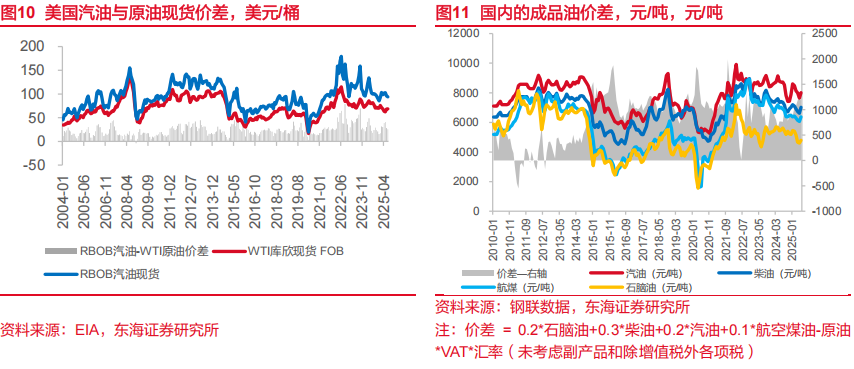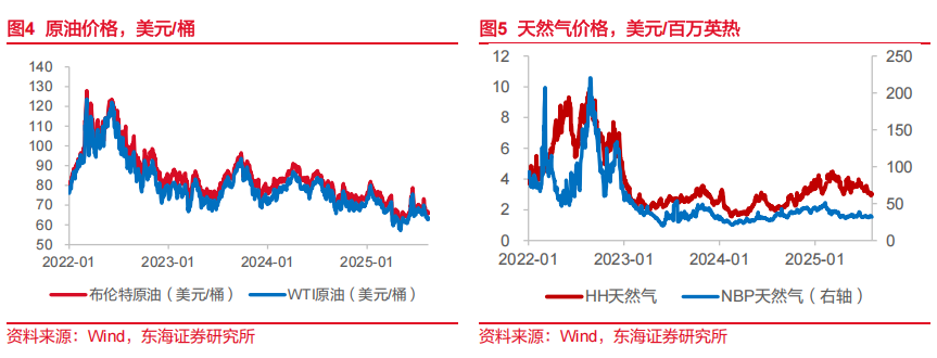 油价判断:伊以冲突趋缓,短期内地缘政治因素影响边际减弱,原油价格已基本度过季节性低点,预计年内布伦特原油仍将在60~90美元/桶区间震荡运行,短期内需关注降息预期引起的油价波动风险。
