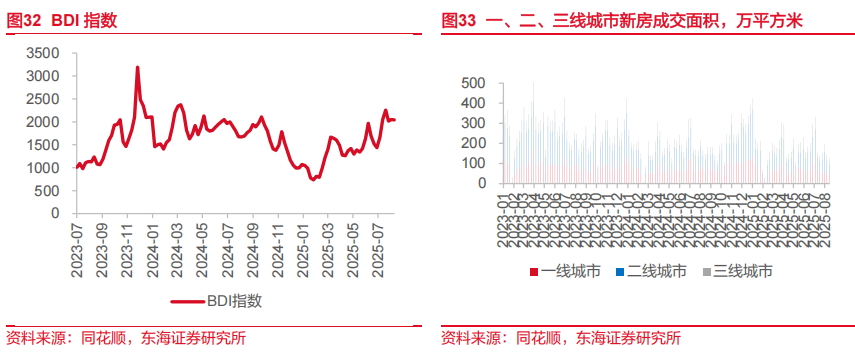 设备更新对制造业的支撑边际回落,“反内卷”亦有影响。制造业投资增速明显回落,一是虽然设备更新有支撑,但力度也在边际减弱,1-7月累计同比回落至15.2%,前值17.3%,年内超长期特别国债支持设备更新投资补助资金多于上半年下达。二是“反内卷”除了对工业生产产生影响外,同样可能影响部分制造业增加资本开支的动力。主要行业中,仅运输设备7月累计同比进一步上升,其余行业均有所回落。回落幅度较大的包括有色金属冶炼、化学原料、医药等。
